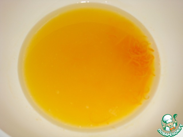 Взбить апельсиновый сок с сахаром, ванилином, цедрой и растительным маслом до полного растворения сахара. Вместо апельсинового можно взять лимонный сок, тогда бисквит будет светленький.