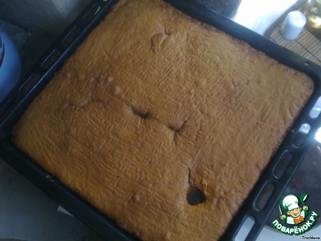 В самый ответственный момент поднятия теста у меня отключили свет... Прошу не судить строго за такой внешний вид коржа.