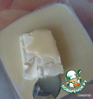 Готовим простейший крем: взбиваем сгущенку со сливочным маслом.