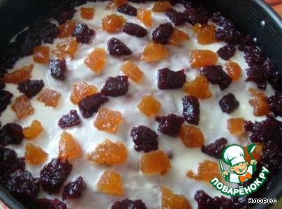 | В морозилке - куча замороженных ягод. Захотелось чего-нибудь с черной смородинкой. Так родился этот симпатичный тортик, который долго не могли "правильно" назвать. Варианты - "Пятнашка", "Витaминка", "Ералаш". Пришел с работы супруг и все расставил по местам: тортик - это хорошо, что он не один на ужин - еще лучше, а назвать его надо "Калейдоскоп". Тортик прожил жизнь яркую, но недолгую. Получила наказы готовить такое чаще. Так и будет! |