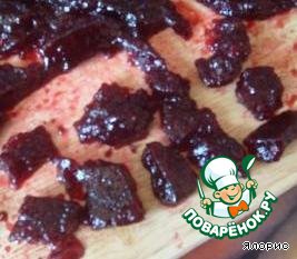 Приготовим вначале желе: протираем размороженную черную смородину через сито (откладываем горсточку ягодок в холодильник на крем), отдельно выкладываем абрикосовый джем в мисочку.