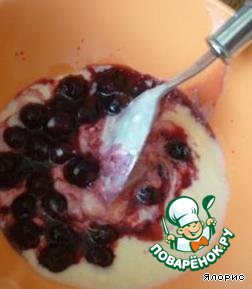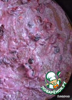 Крем раскладываем пополам в две емкости. В одну добавляем отложенные ранее ягодки смородины. Девочки! Цвет просто космический! И очень вкусный кремик получается!!! У меня уже идеи на это тему родились!!!