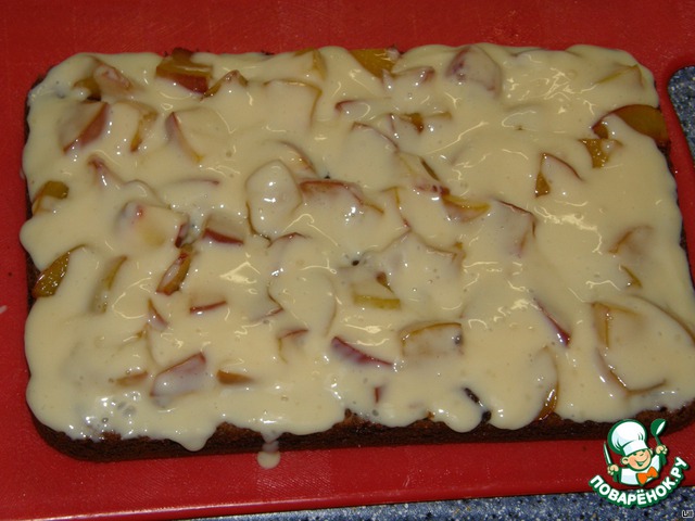 На одну половину бисквита выкладываем наши медовые нектарины.
