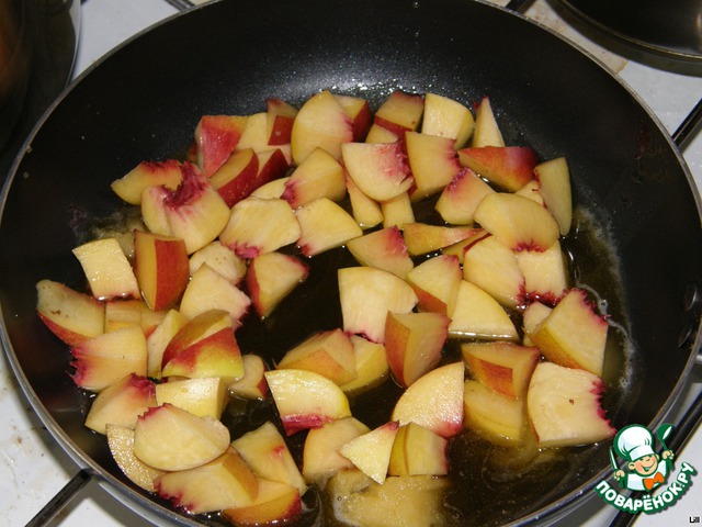 Нектарины моем, отделяем от косточек, нарезаем кубиками и обжариваем в мёде. После этой процедуры нектарины станут нежными и сочными.