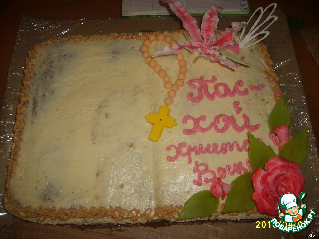 | Вот решила удивить своих тортиком... Праздник Пасха - великий праздник, поэтому захотелось оформить торт как-нибудь оригинально. И вот что у меня получилось... Тортик не очень сладкий, из-за крема, но сочный - для тех, кто не любит сухие торты... |