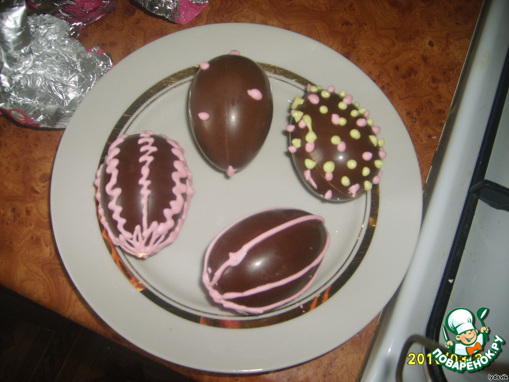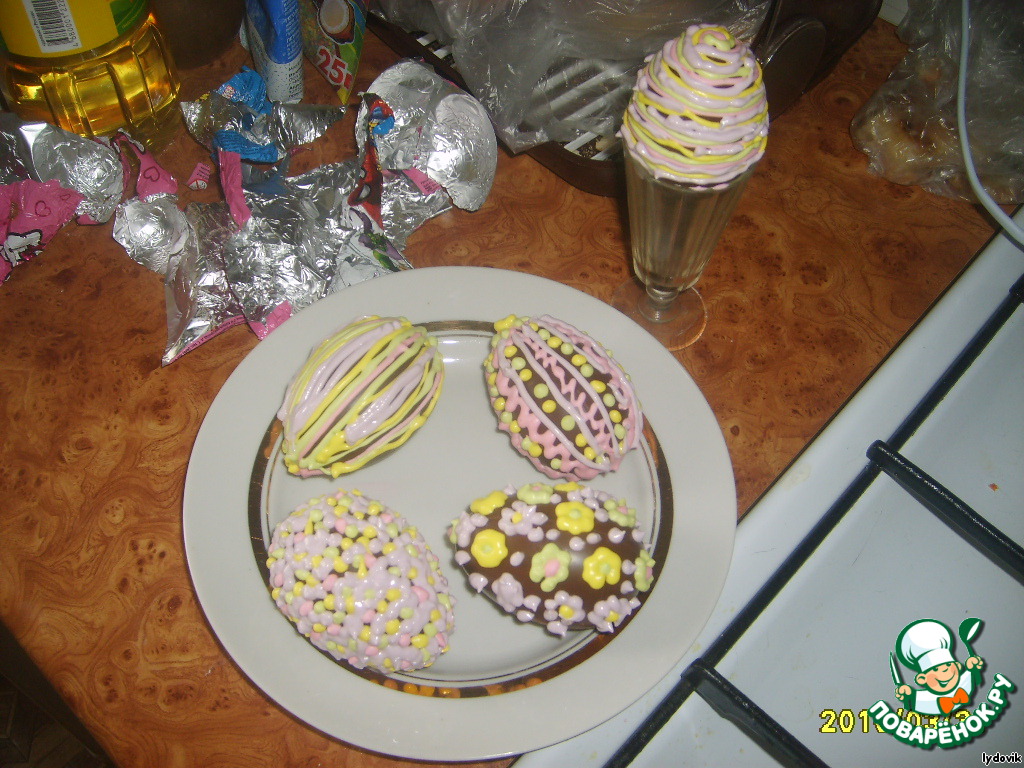 Берем шоколадные яйца и разрисовываем их разноцветным айсингом