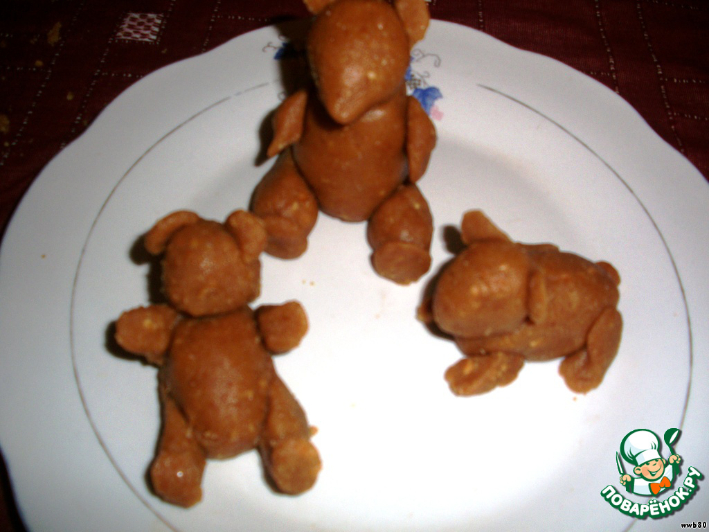 Слепить медвежат.