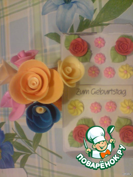 Украсила я заранее приготовленными цветами из конфеток и купленными сахарными цветочками.