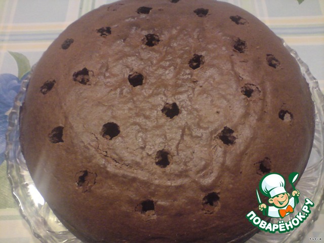 Поставить коржи друг на друга и толстой деревянной ложкой потыкать сверху донизу.