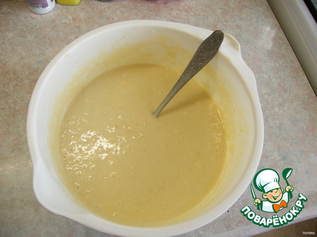 Всыпать муку, разрыхлитель и вновь перемешать.