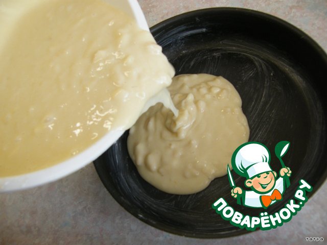 Одну часть выкладываем в смазанную маслом форму и выпекаем 15-20 мин. до готовности.