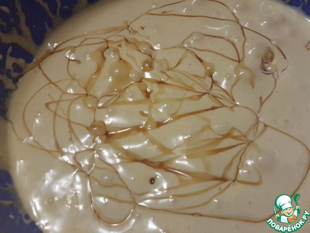 В взбитое масло взбивая добавляем смесь из сгущенки с глазурью.