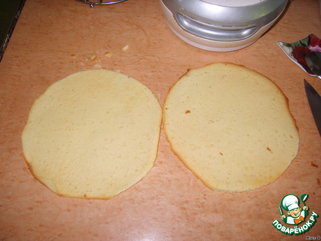4. Выпечь два коржа (минут 20-25 при 200 град.), подровнять, если требуется.