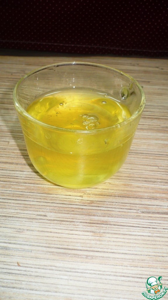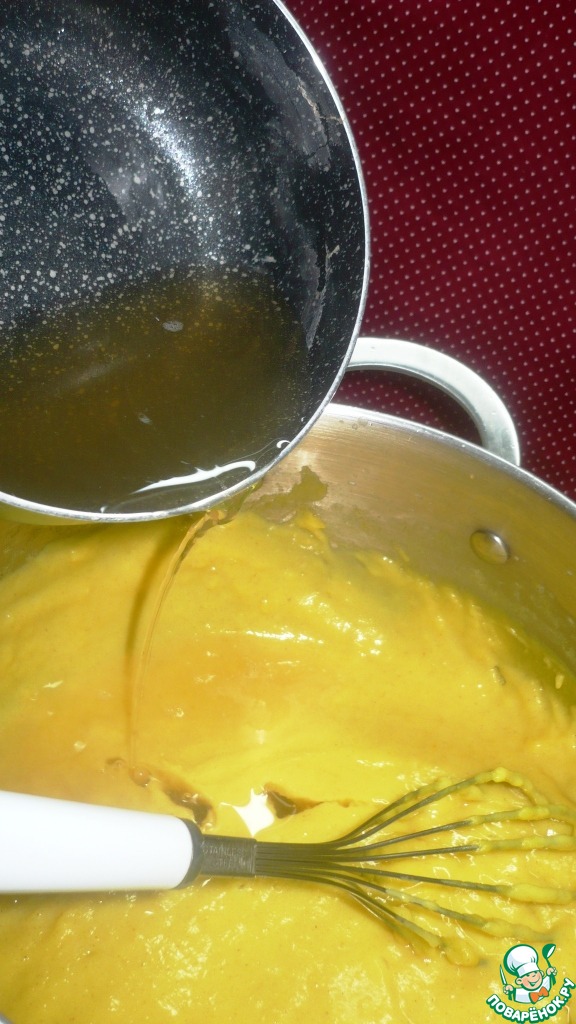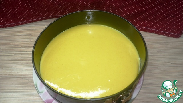 Желатин растворить подогреванием, добавить в крем. Крем я немного подкрасила куркумой.