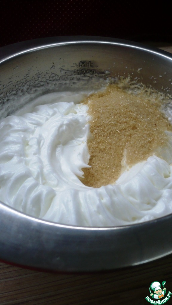Для белковой прослойки охлажденные белки взбить в крепкую пену, добавить сахар