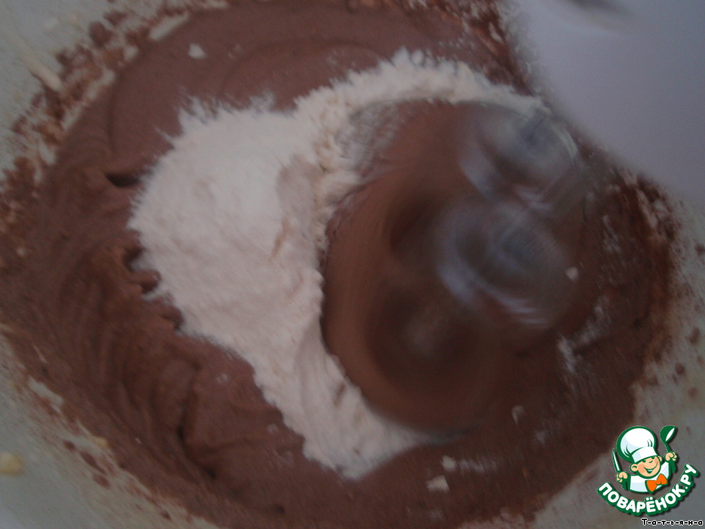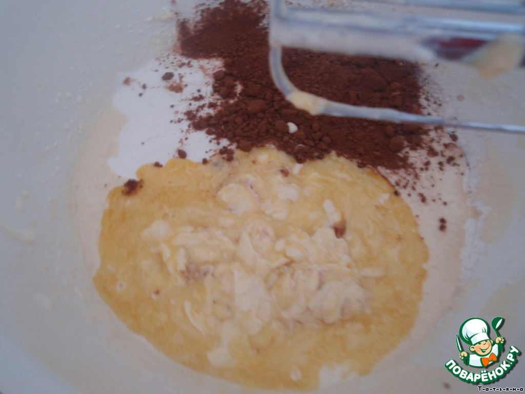 Добавить 2 ст.л. сгущенного молока, 2 ст.л. какао, 3 ст.л. сметаны, растопленный маргарин.