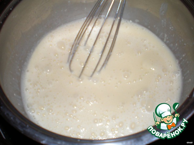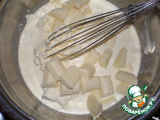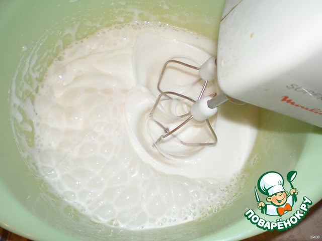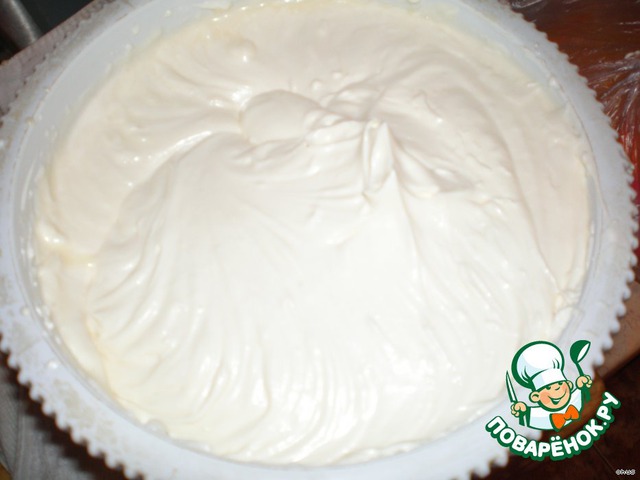 Взбиваем оставшиеся сливки, добавляем яичный ликер, ванилин...