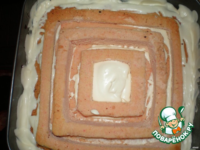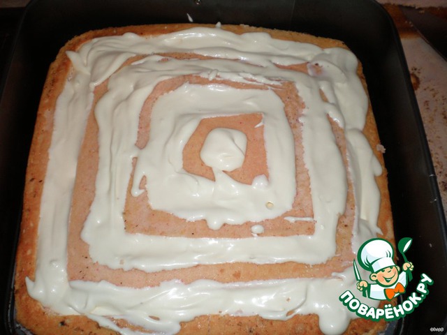 я делала отдельно 2 коржа (а то у меня проблемы с разделением одного на два коржа )