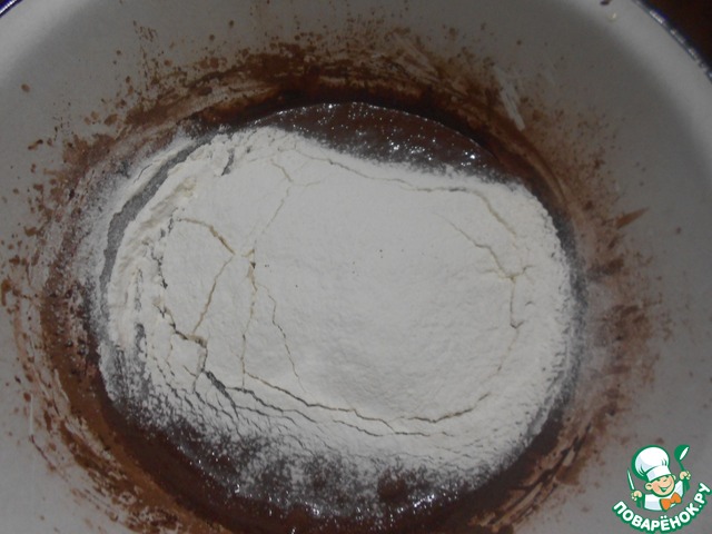 Просеиваем какао и хорошо взбиваем.