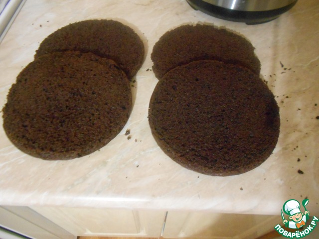 Разрезаем каждый корж пополам.