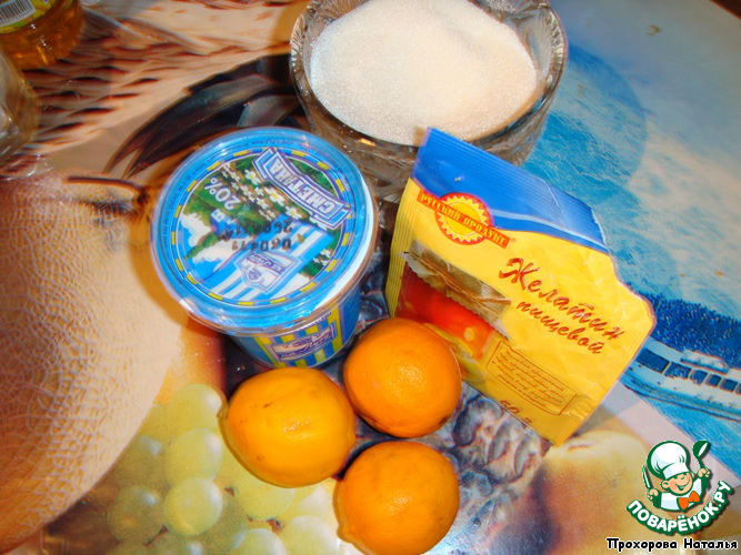 В сметану добавить сахар. Влить вторую часть желатина. Выложить массу на немного застывший лимон.