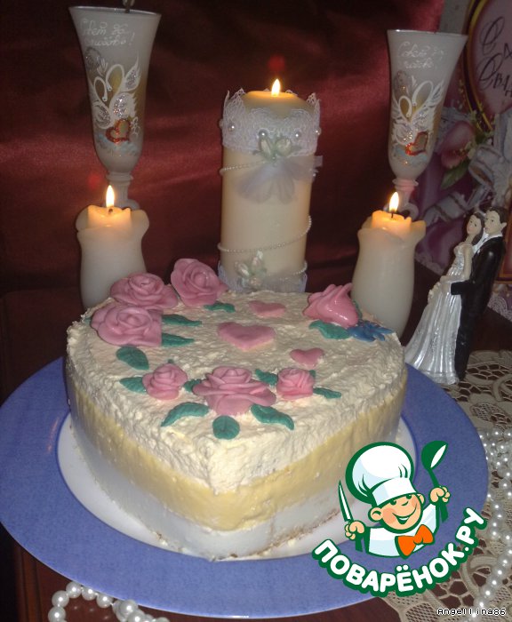 | Хочу поделиться с вами рецептом вкуснейшего торта с 3 видами крема. Этот торт делала на первую годовщину друзей. К сожалению, пошаговых фотографий нет, попробую описать процесс как можно понятней. |