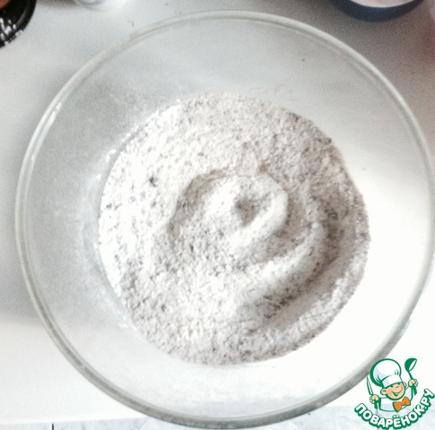 Муку просеиваем с разрыхлителем, затем смешиваем с сахаром, солью, тертым шоколадом и ванилином.
