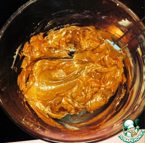 Для крема я взбила сливочное масло со сгущенкой, в конце добавила растопленный шоколад. Важно, что все продукты должны быть одной температуры, комнатной.