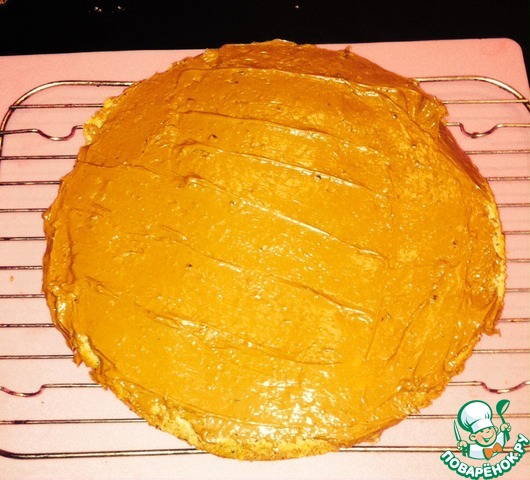 И, наконец, второй бисквитный корж смазала шоколадным кремом, водрузила сверху, кремом вниз.