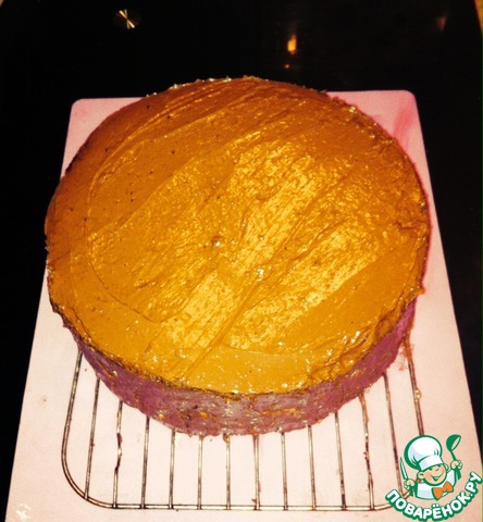 Застывший торт достаем, если нужно, пожрав нивам поверхность и покрываем шоколадной глазурью. Я не вносила глазурь в ингредиенты, так как у каждого свой любимый рецепт. Я использовала зеркальную г