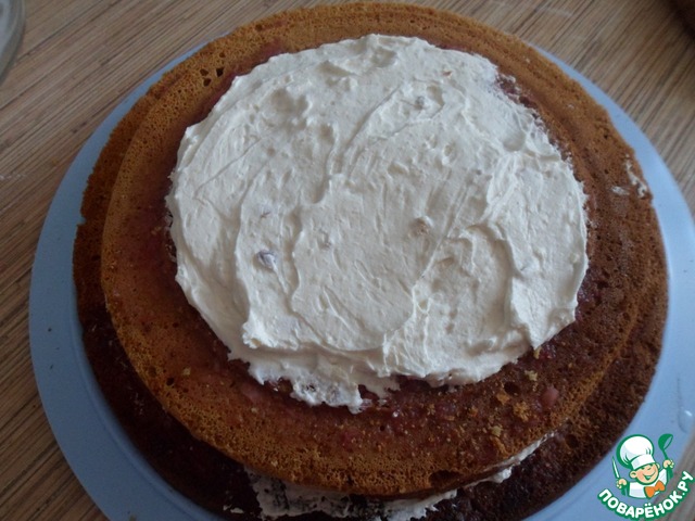 После того, как крем охладился, смазываем им, не жалея, все коржи.