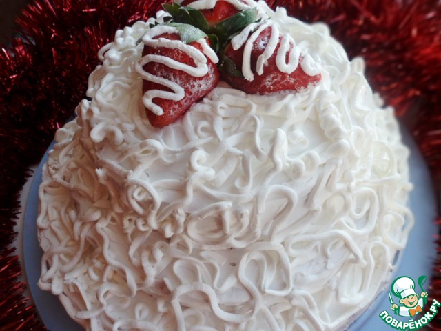 На верхушку торта водрузить несколько клубничек и красить их тоже сливками.