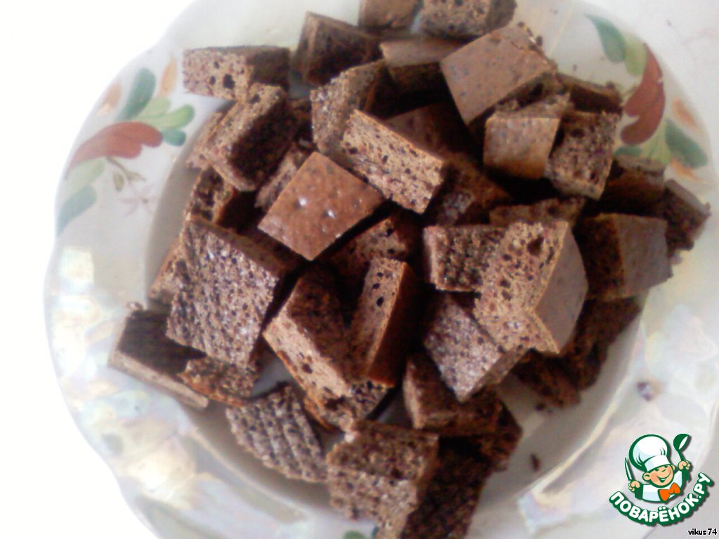 Толстый корж и кружок из тонкого нарежьте небольшими кусочками, у меня вышли примерно 2х2 см