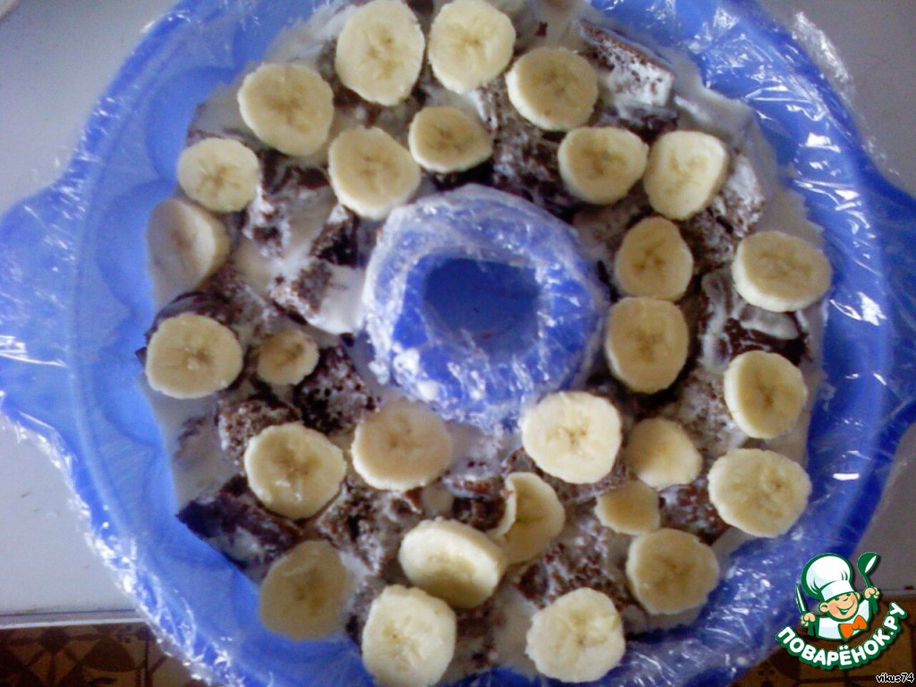 Нарежьте банан кружочками и выложите сверху. Без банана вполне можно обойтись.