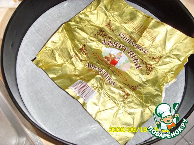форму застелить бумагой (обязательно) смазать маслом. Я как-то писала: не выбрасывайте обертки от масел, так удобно смазывать формы. Использовать смазанную пекарскую бумагу нужно обязательно. Коржи очень-очень нежные.