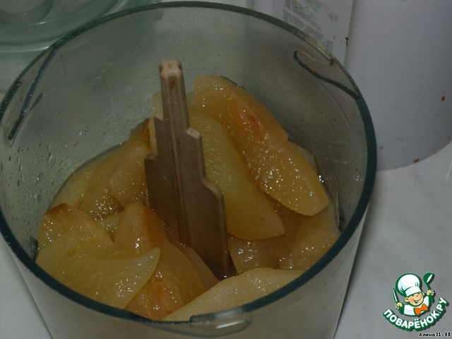 Груши из компота отцеживаем и измельчаем в пюре, очищаем кардамон 5 шт., и зернышки добавляем в пюре (ароматизатор по желанию, кто что любит).
