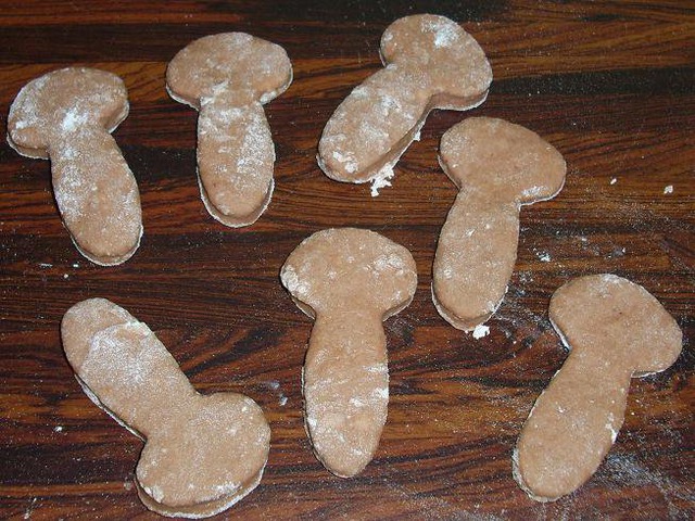 Из оставленного кусочка теста делаю грибочки выдавливая формочкой.Так же выпекаю с коржами,но вытаскиваю грибочки раньше.
