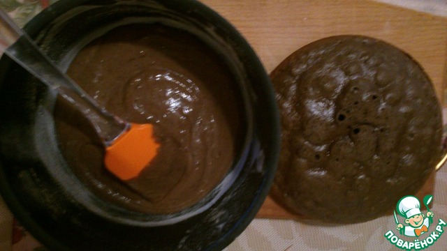 Разливаем тесто по 3-м формам (у меня 16 см) и выпекаем при 180 С 30 минут (готовность проверяем зубочисткой). Готовые коржи остудить на решетке, затем отправить в холодильник.