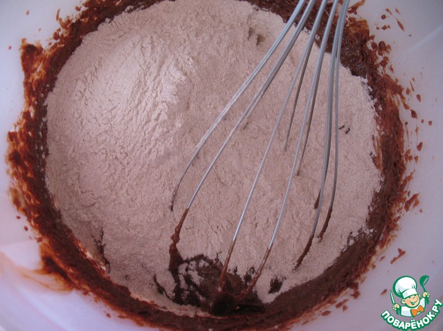 Постепенно всыпаем муку, тщательно при этом перемешивая.