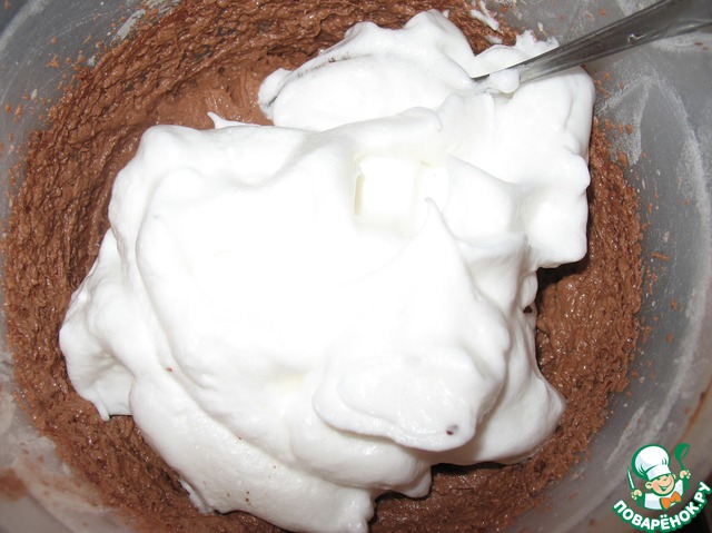 Теперь аккуратно добавляем взбитые белки в тесто.