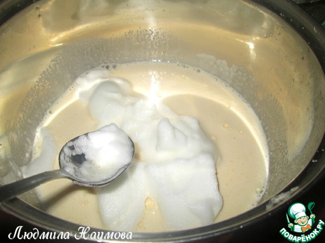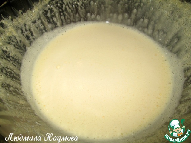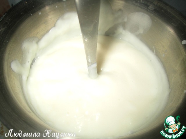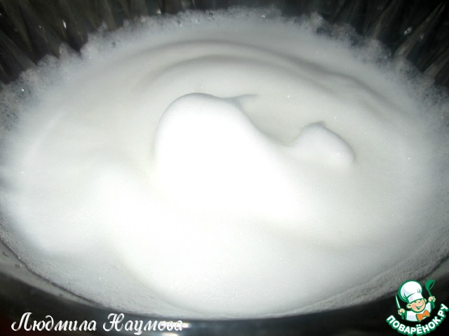 Желтки взбить с сахаром, постепенно в яичную массу добавить воду.