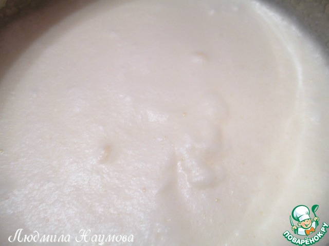 Для приготовления крема, 400 мл молока довести до кипения, остальное холодное молоко развести с крахмалом и мукой, размешать до однородной массы. Полученную массу ввести в кипящее молоко и варить на медленном огне, при постоянном помешивание до загустения 1-2 минуты. Крем должен быть густым и похож на однородное пюре.