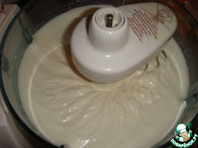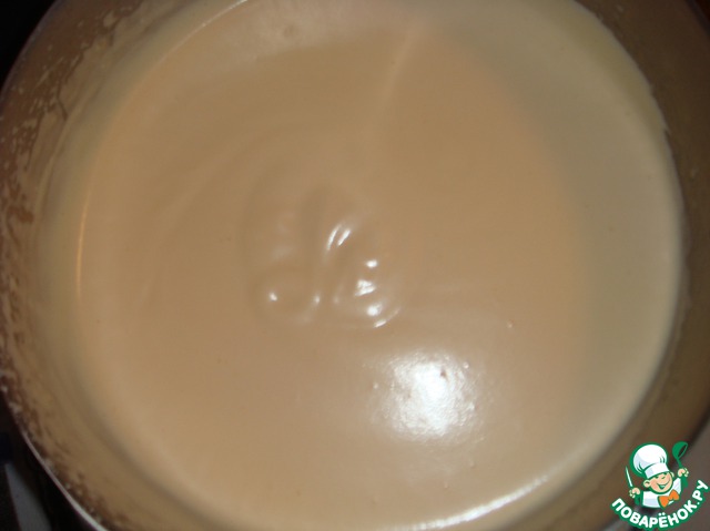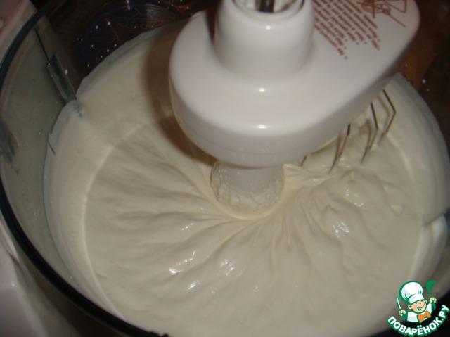 сгущенное молоко. Взбивать очень осторожно, чтобы не перебить! Крем должен быть воздушным и в то же время густым (не падать с ложки).