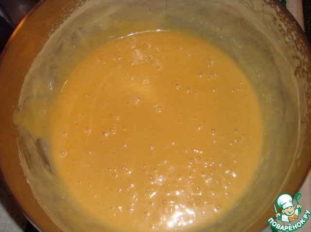 Смешать в большой миске яйца с сахаром. Поставить на паровую баню, то есть
