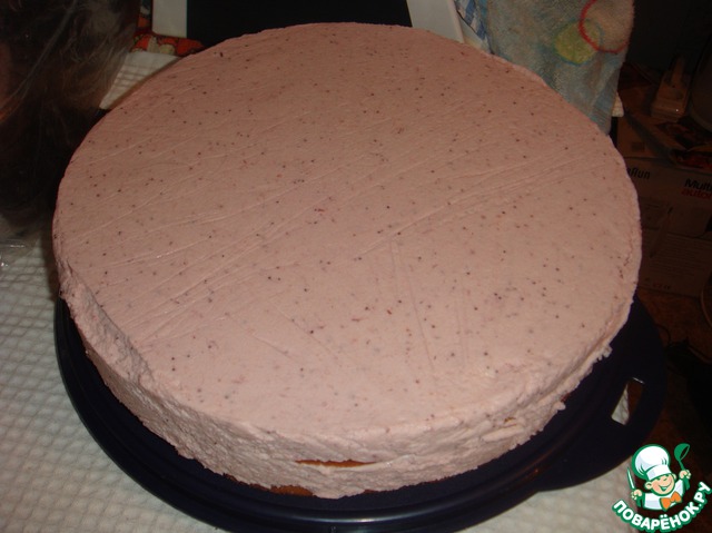 Ставим на холод, лучше на ночь. Переворачиваем торт на блюдо.