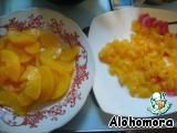 У нас есть 20 минут. За это время режем персики. Половину дольками, вторую - кубиком или еще как-то. Главное, чтобы мелко было.