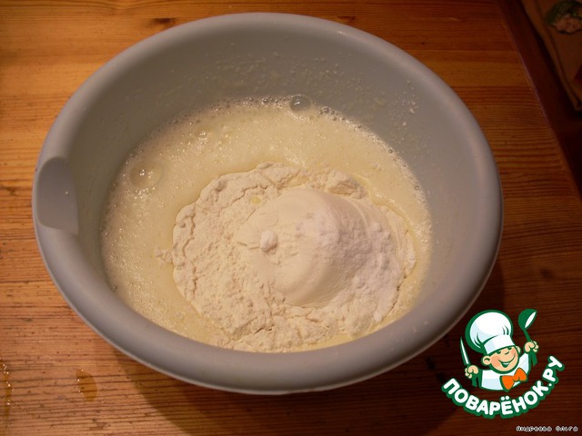 Выливаем тесто на промазанный маслом пергамент и выпекаем до готовности.