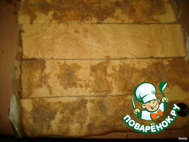 разрезать на 4 полоски шириной 10 см, пропитать с обеих сторон.