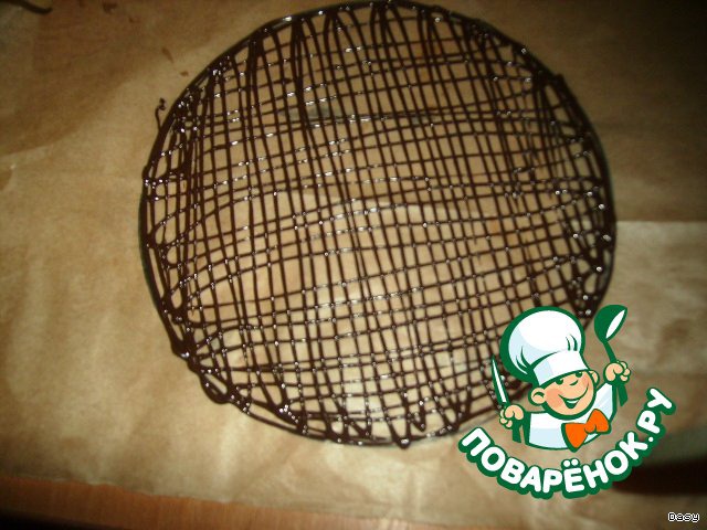 Для шоколадной ленты растопить 50 г шоколада на водяной бане. Вырезать из пергамента ленту по обьёму и ширине тортика, обмазать ленту шоколадом с помощью кисти или подручных средств. Пока не застыл, приложить к бортам тортика по всей длине и отправить на 3-5 минут в морозилку. После аккуратно снять бумагу, чтобы не повредить шоколад.