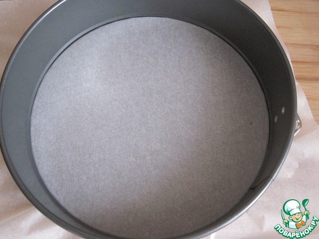 Для начала подготовка. 1. Дно разъёмной формы выстилаем бумагой для выпечки, бока ни чем не смазываем (удобнее подготовить сразу две разъёмные формы). 2. Сливочное масло заранее достаём, что б согрелось при комнатной температуре до мягкости 3. Духовку включаем разогреваться до 180 градусов. 4. И подогреваем чайник. В ингредиентах я не указала, но горячая вода нам понадобится. Совсем чуть-чуть.